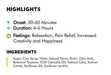 This delicious Strawberry-Lemonade flavored sanded gummy is perfect to help you have a better day. Each edible is 5mg of THC, with 20 in a pack.